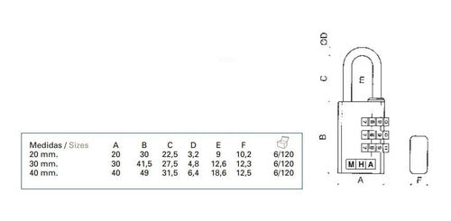 Candado Mha Latonado Mod.16-40mm